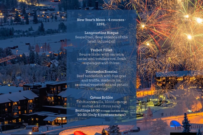 Velkommen til en hyggelig nyttårsfeiring og nyt en deilig 4-retters middag.